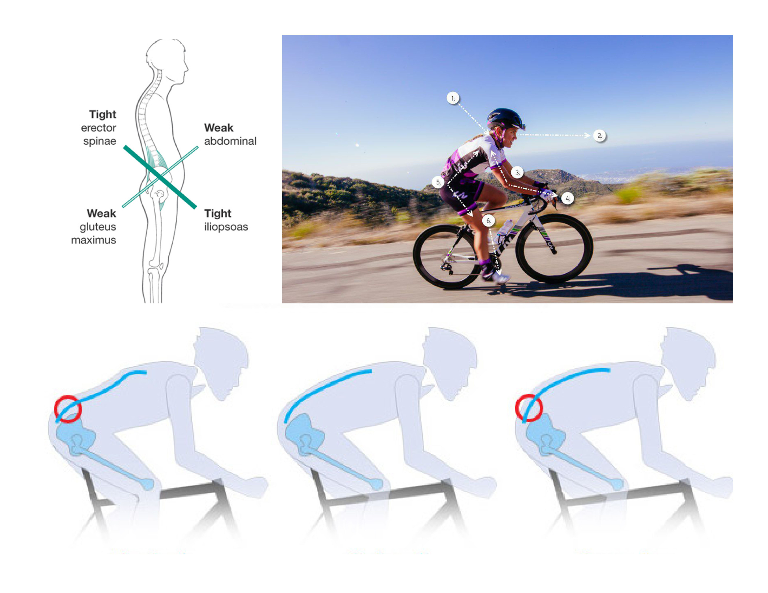 Lo que lleva a hombros encorvados, un abdomen sobresaliente y glúteos y músculos del core debilitados, afectando tu rendimiento sobre la bicicleta.
